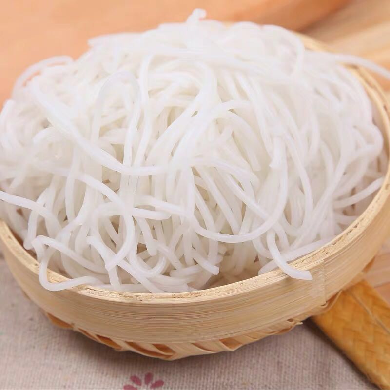 工藝流程:大米混配--加淀粉--粉碎--和料--熟化--擠絲--散絲攤薄--切斷掛桿--老化松絲--計量入盒--定型--烘干--成品